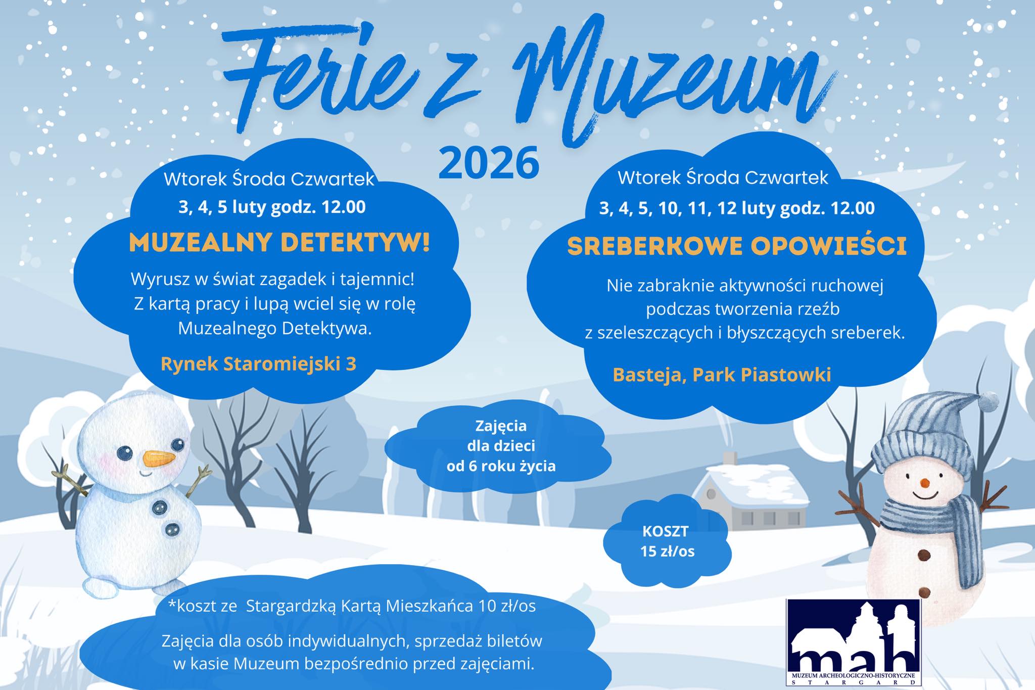 Muzealni detektywi spotkają się 3, 4, i 5.02 (wtorek, środa, czwartek). O 12:00 w MAH przy Rynku Staromiejskim wyruszą w świat pełny zagadek i tajemnic. Z kolei 3, 4, 5, 10, 11 i 12.02 (wtorki, środy i czwartki) o 12:00 w Bastei rozpoczną się sreberkowe opowieści. Ich uczestnicy stworzą błyszczące rzeźby i poruszają się trochę. Bilety na obie propozycje będą do kupienia w MAH bezpośrednio przed zajęciami.